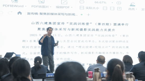 11月13日,山西六建集团宣传“实战训练营”第四期开营。受邀的山西传媒学院乔傲龙老师和山西青年报记者李睿老师,以“集训+实战”的模式,带领50余名通讯员,走进宣传工作思维破冰与能力提升之旅。